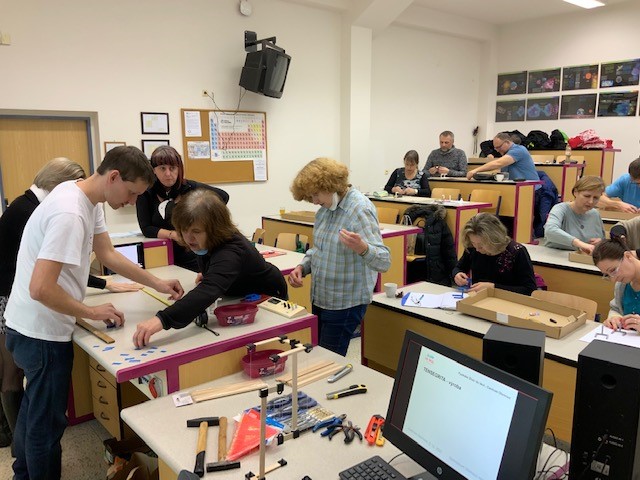 Na Mikuláše jsme si to opravdu užili. Vyzkoušeli jsme si několik fyzikálních a šifrovacích adventních kalendářů, probrali jsme přípravu ŠVP, připomněli si Science on Stage a pak jsme se vrhli na Tensegrity. Nejprve jsme se seznámili s tím, co to vlastně je, jak je možné, že to drží pohromadě, a prohlédli si několik fotek mostů, haly a prototypu přistávací sondy. Dva kousky jsme viděli naživo a pustili se do jejich výroby. I ten první, jednodušší, nám dal zabrat, ale šikovné ruce měli nakonec všichni. Pro druhou stavbu jsme jen rozdali materiál a návod a už jsme se postupně rozjeli do svých domovů. Dvě kolegyně se připojily online, takže i k nim nakonec vyrazila zásilka s materiálem, aby mohly své žáky překvapit zajímavou stavbou.